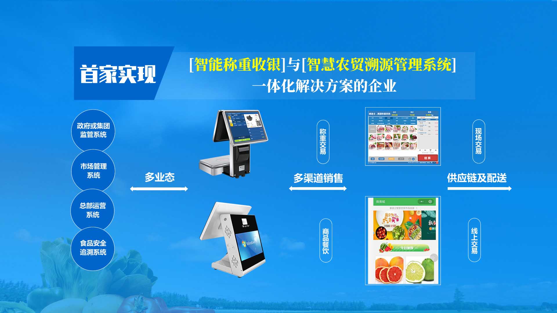 統(tǒng)一管理系統(tǒng)、規(guī)范溯源秤重、杜絕缺斤少兩、提升市場信譽(yù)度,革新市場營銷和集群推廣模式。